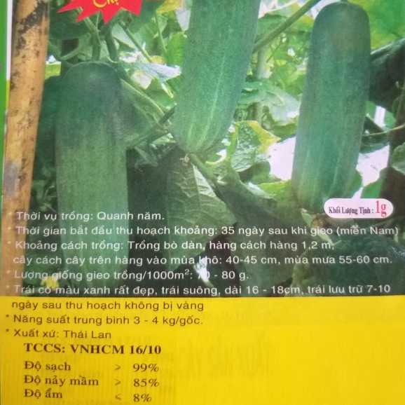Nhà cửa & Đời sống > Làm vườn > Hạt giống & chất hỗ trợ trồng cây || Dưa Leo Lai F1, Xuất Xứ Thái Lan (gói 1g), Hạt Giống Nhập KhẩuCòn hàng