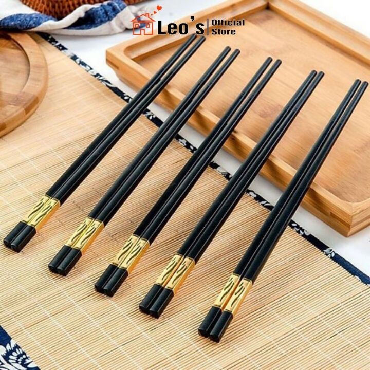 Đũa mạ vàng cao cấp phong cách Hàn Quốc, Nhật Bản , đũa nhựa đen hợp kim mạ vàng chống trơn Leo's_Officail✔️Bộ 10 đũa mạ vàng cao cấp Hàn Quốc chống trơn trượt chống mốc, chống gỉ, chịu nhiệt cao