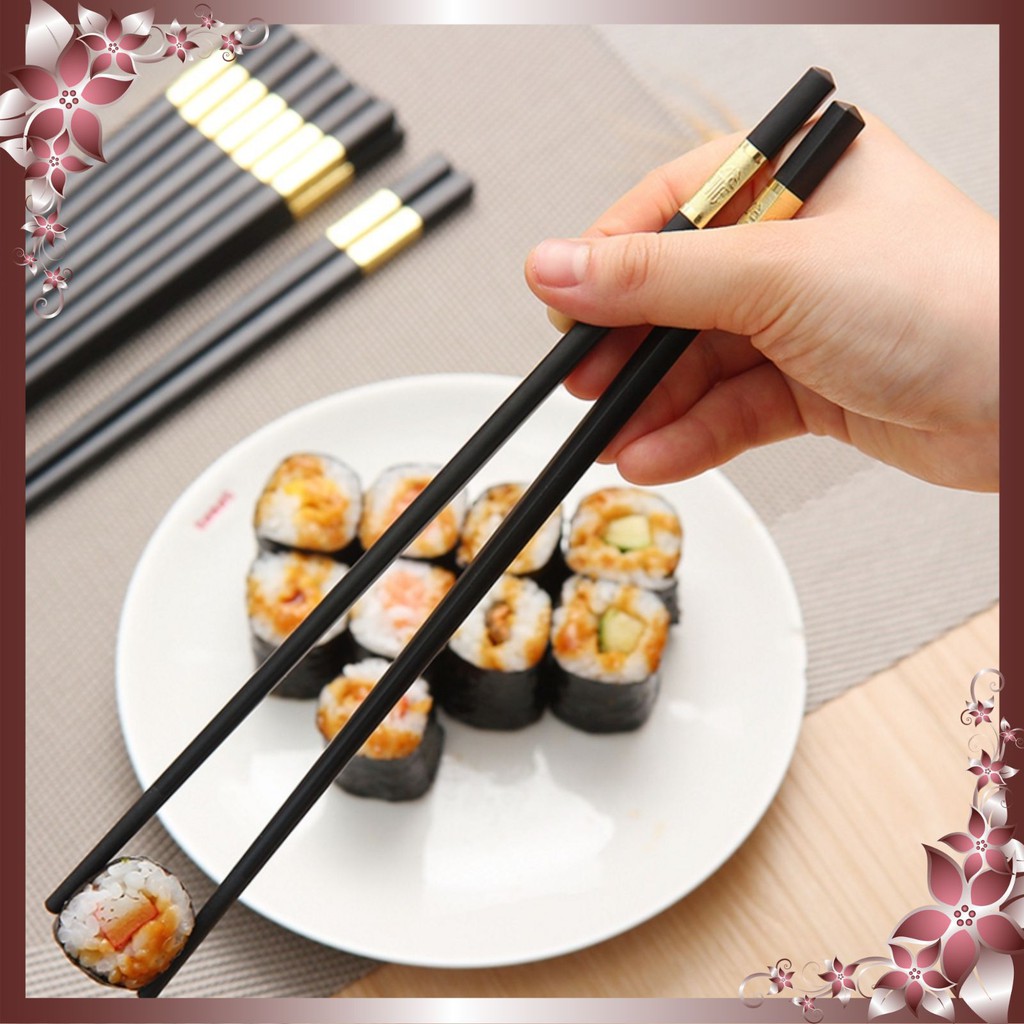 Đũa mạ vàng phong cách Nhật, hộp 10 đôi - Đũa khảm vàng Hàn Quốc chống mốc, chống trơn, chịu nhiệt cao – GD025