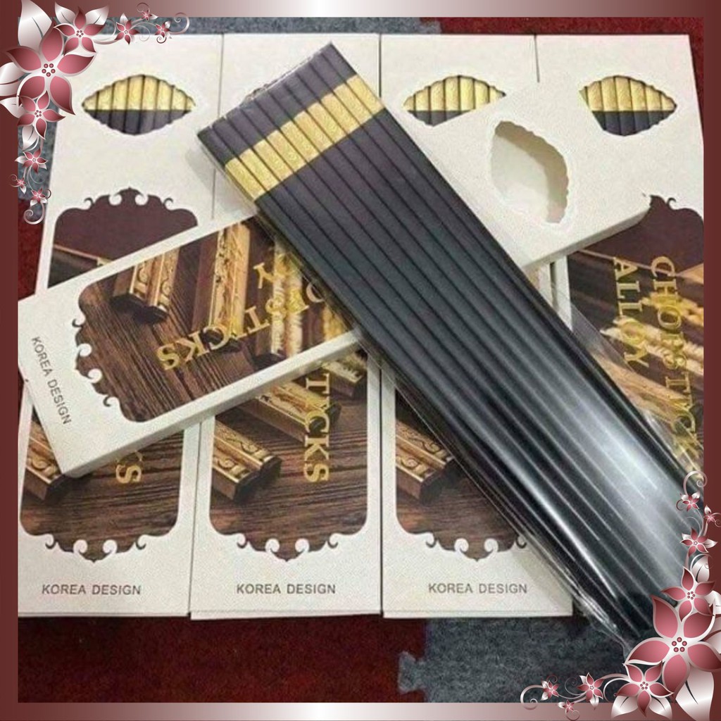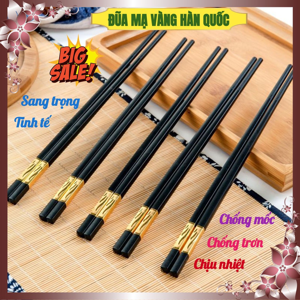 Nhà cửa & Đời sống > Dụng cụ nhà bếp > Cây vét bột & đồ gắp thức ăn || Đũa mạ vàng phong cách Nhật, hộp 10 đôi - Đũa khảm vàng Hàn Quốc chống mốc, chống trơn, chịu nhiệt cao – GD025Còn hàng