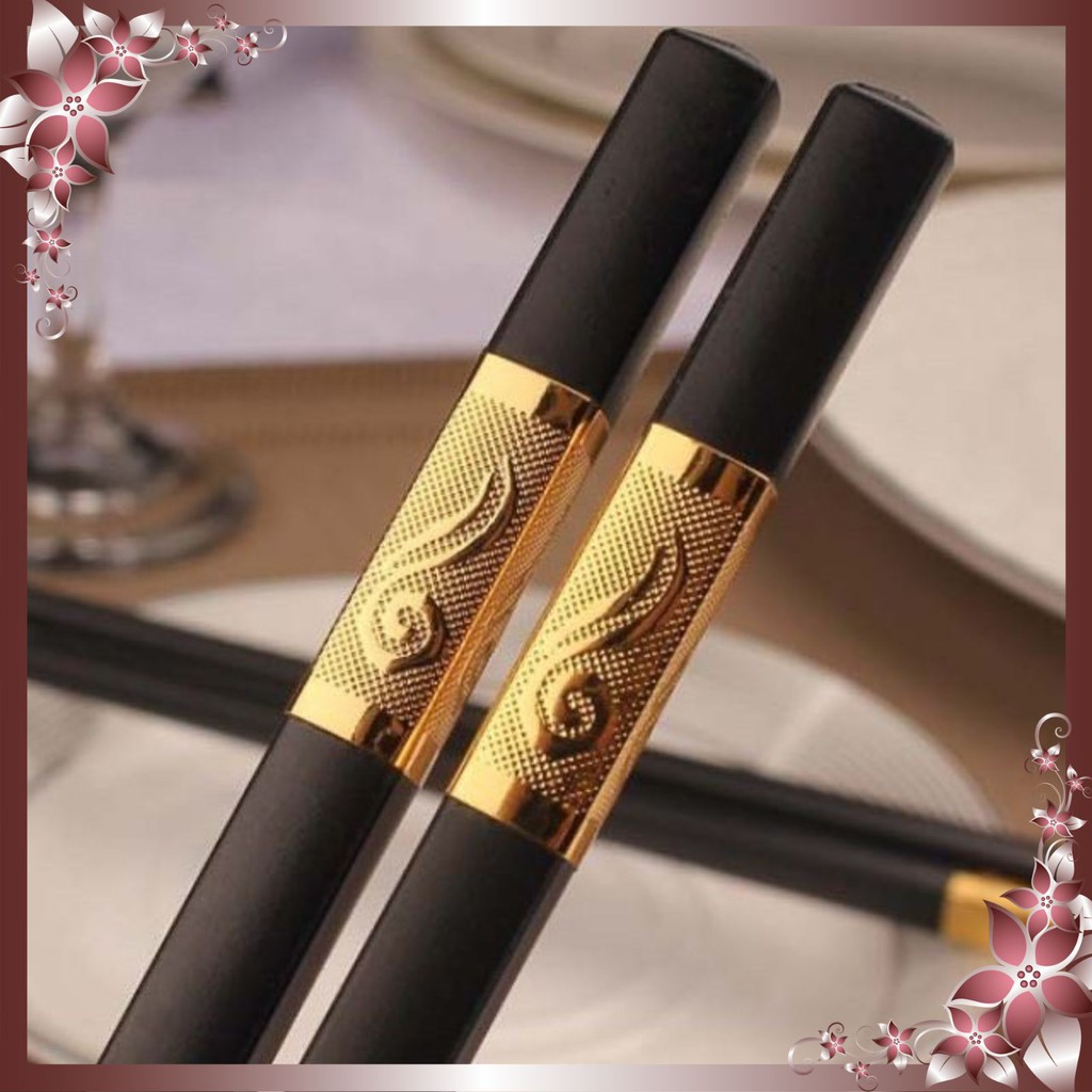 - Đôi đũa được thiết kế bọc viền hoa văn hợp kim mạ vàng cực kỳ tinh tế và sang trọng.