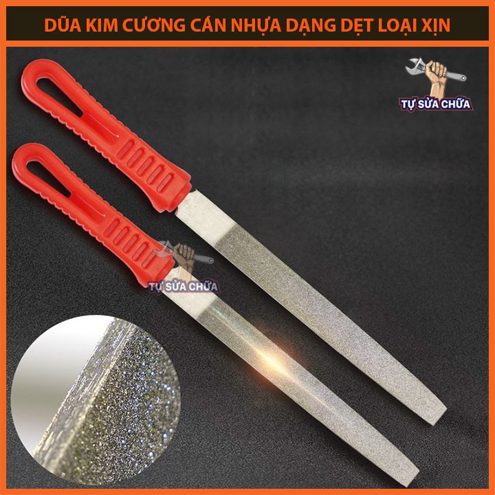 Dũa kim cương bản lớn được làm từ kim cương tổng hợp, sử dụng được trên các loại vật liệu: thủy tinh, đá, gốm sứ, kim loại: nhôm, thép không gỉ, các vật liệu thép cứng ..