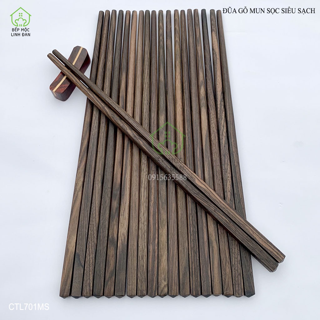 [Mã BMBAU50 giảm 10% đơn 99k] Đũa mun sọc tự nhiên - Gỗ mộc siêu sạch (CTL701MS) Bộ 10 đôi vuông