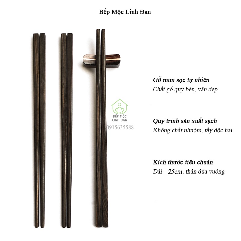 Giới thiệu [Mã BMBAU50 giảm 10% đơn 99k] Đũa mun sọc tự nhiên - Gỗ mộc siêu sạch (CTL701MS) Bộ 10 đôi vuông