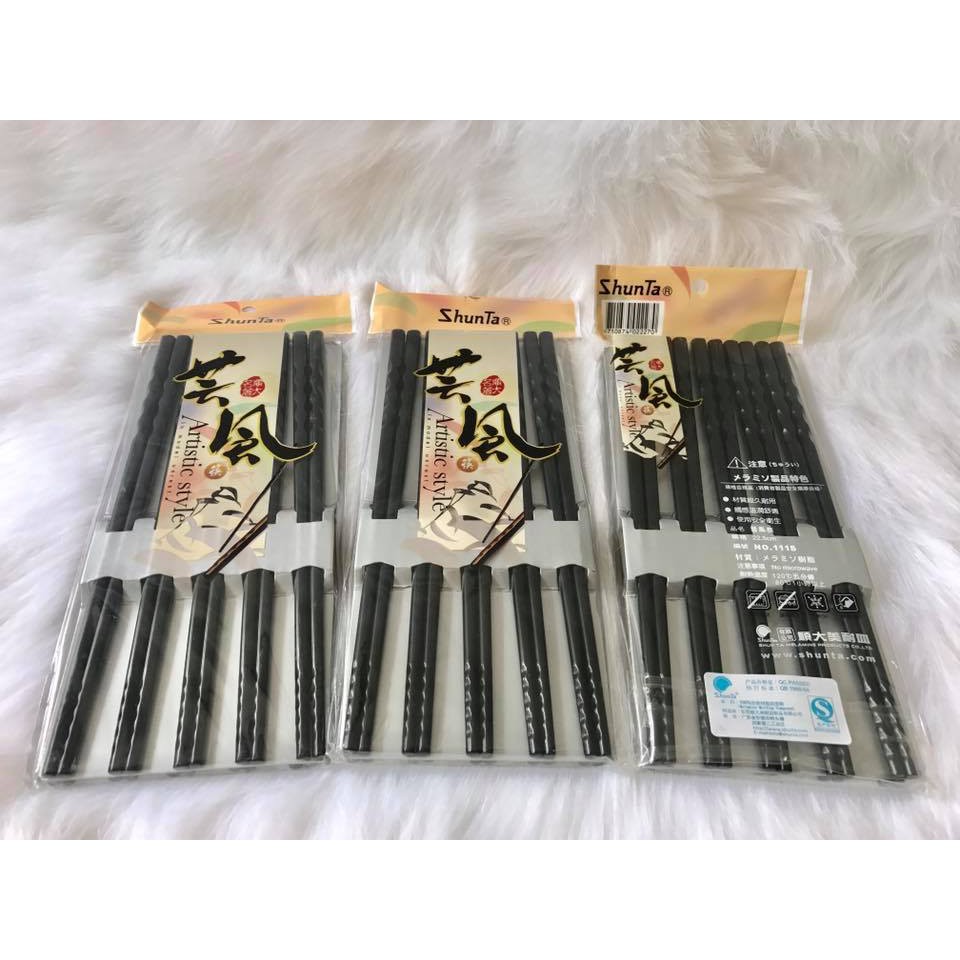 Đũa Nhật ShunTa Đen Xoắn Cao Cấp 22.5cm 10 đôi/bao