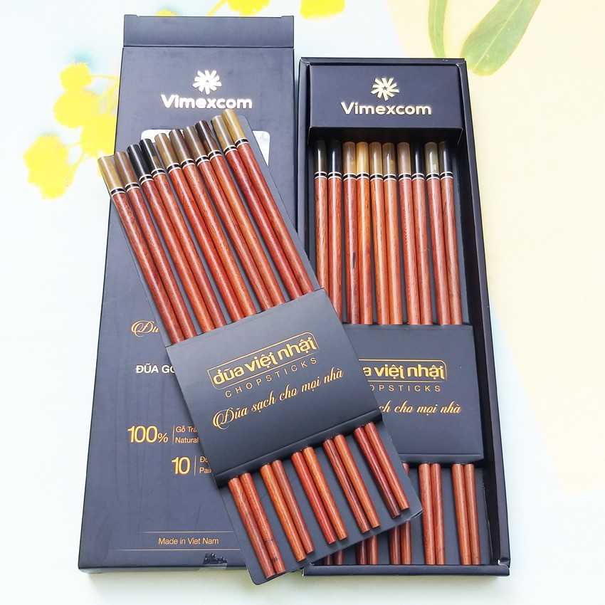 Đũa sạch gỗ trắc tự nhiên đầu sừng Vimexcom hộp 10 đôi