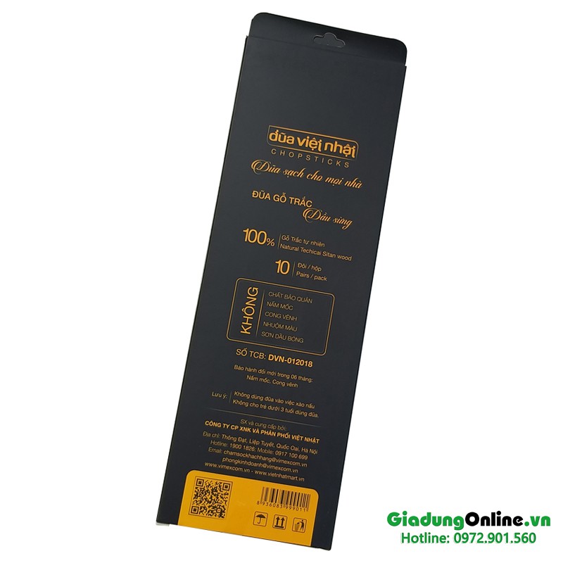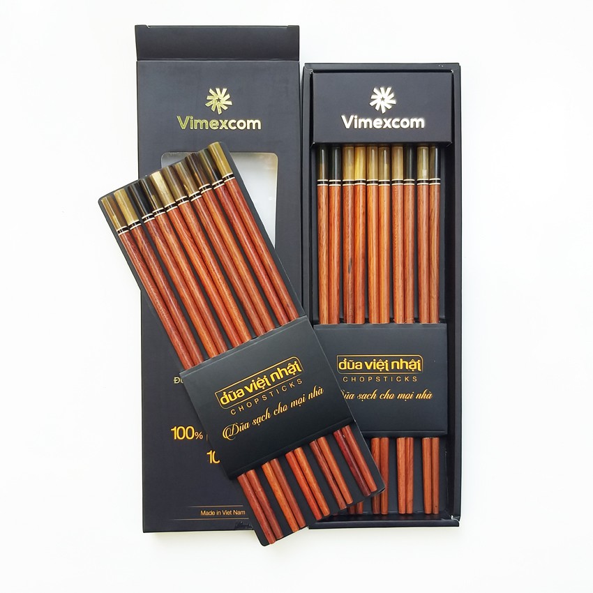 Giới thiệu Đũa sạch gỗ trắc tự nhiên đầu sừng Vimexcom hộp 10 đôi