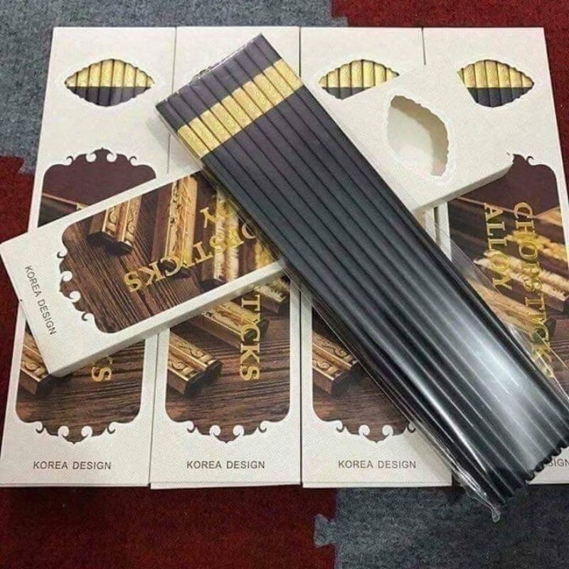 đũa sừng khảm vàng phong cách nhật hộp 10 đôi
