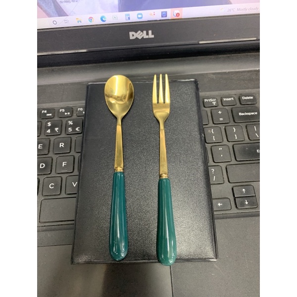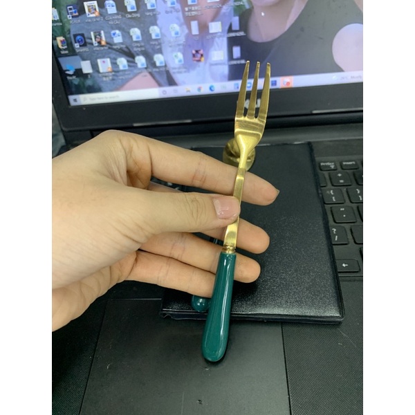 Nhà cửa & Đời sống > Bộ đồ bàn ăn > Dĩa || Đũa Thìa Dĩa inox mạ vàng cán sứ xanh sang trọngCòn hàng