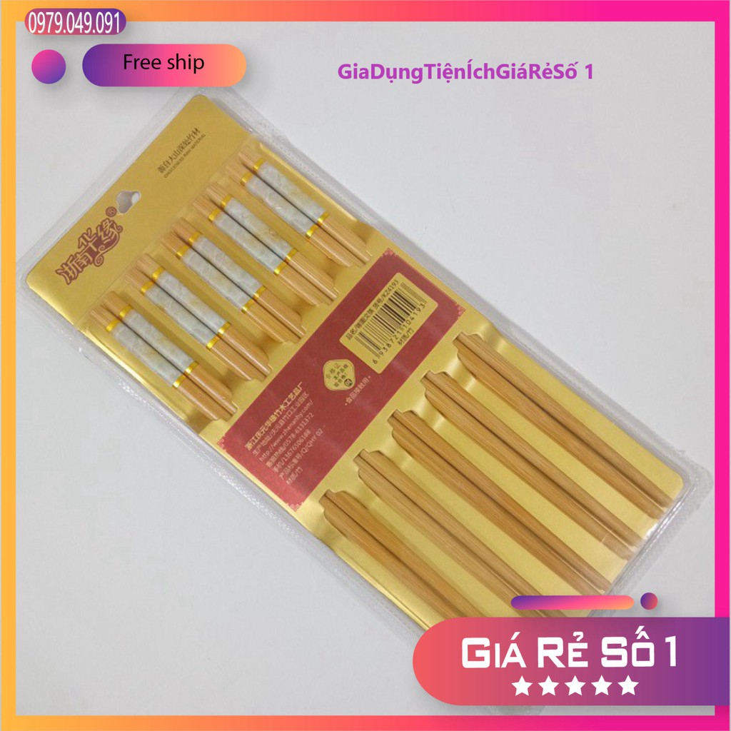 Đũa tre cao cấp xuất khẩu vân đá hộp 10 đôi