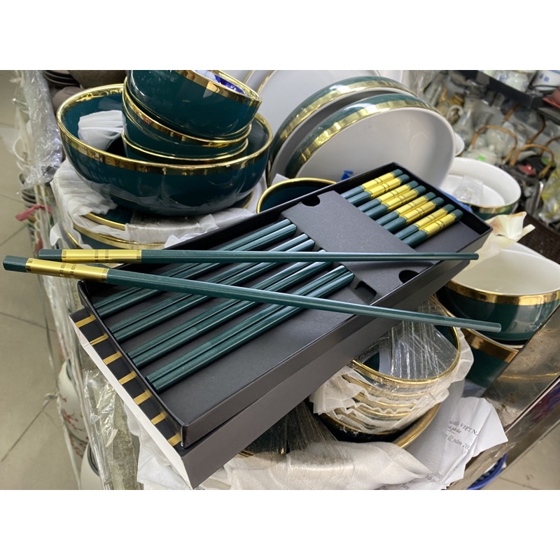 Nhà cửa & Đời sống > Bộ đồ bàn ăn > Bộ dao kéo || đũa xanh viền vàng cao cấp (set 10 đôi)Còn hàng