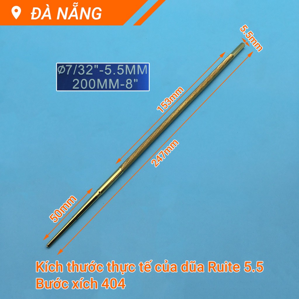 Giới thiệu Dũa xích máy cưa Φ5.5 x 200mm RUITE phủ Titan vàng cho bước xích 404