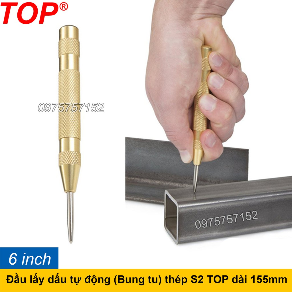 Giới thiệu Đục lấy dấu tự động (Bung tu) thép S2 cao cấp dài 155mm TOP, dụng cụ phá kính thoát hiểm, dụng cụ định vị, đục lỗ tâm