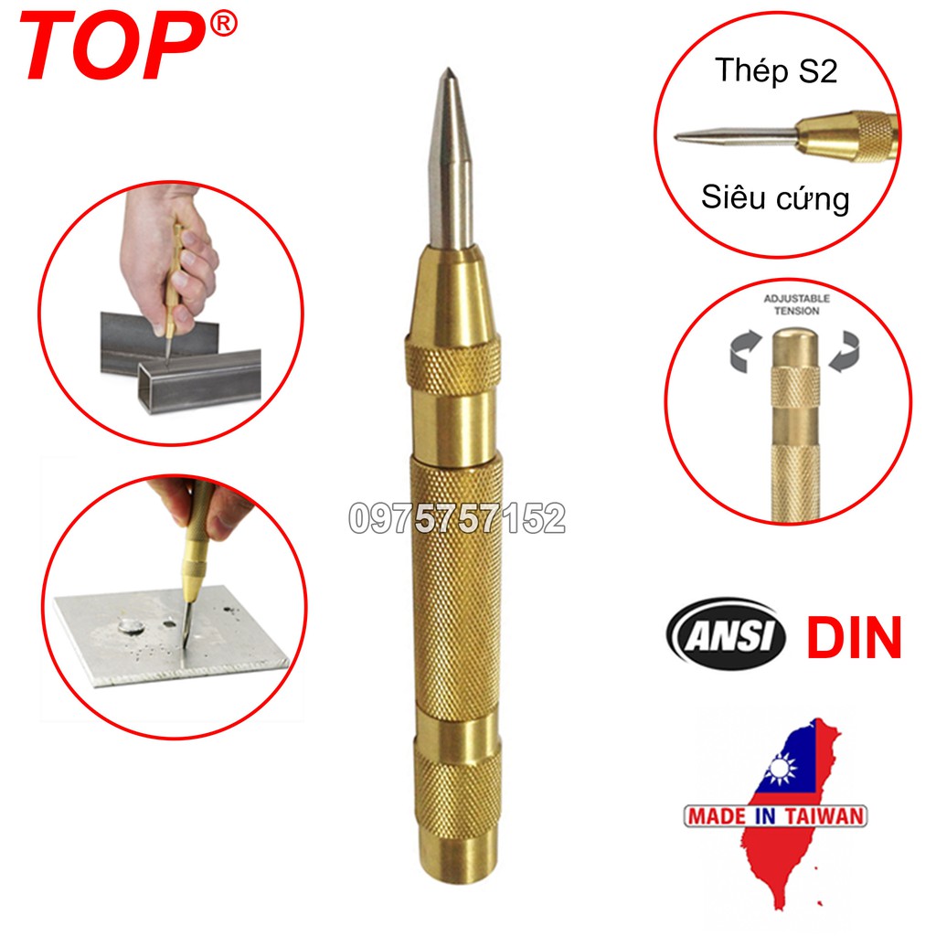 Đục lấy dấu tự động (Bung tu) thép S2 cao cấp hãng TOP, dụng cụ phá kính thoát hiểm, dụng cụ định vị, đục lỗ tâm