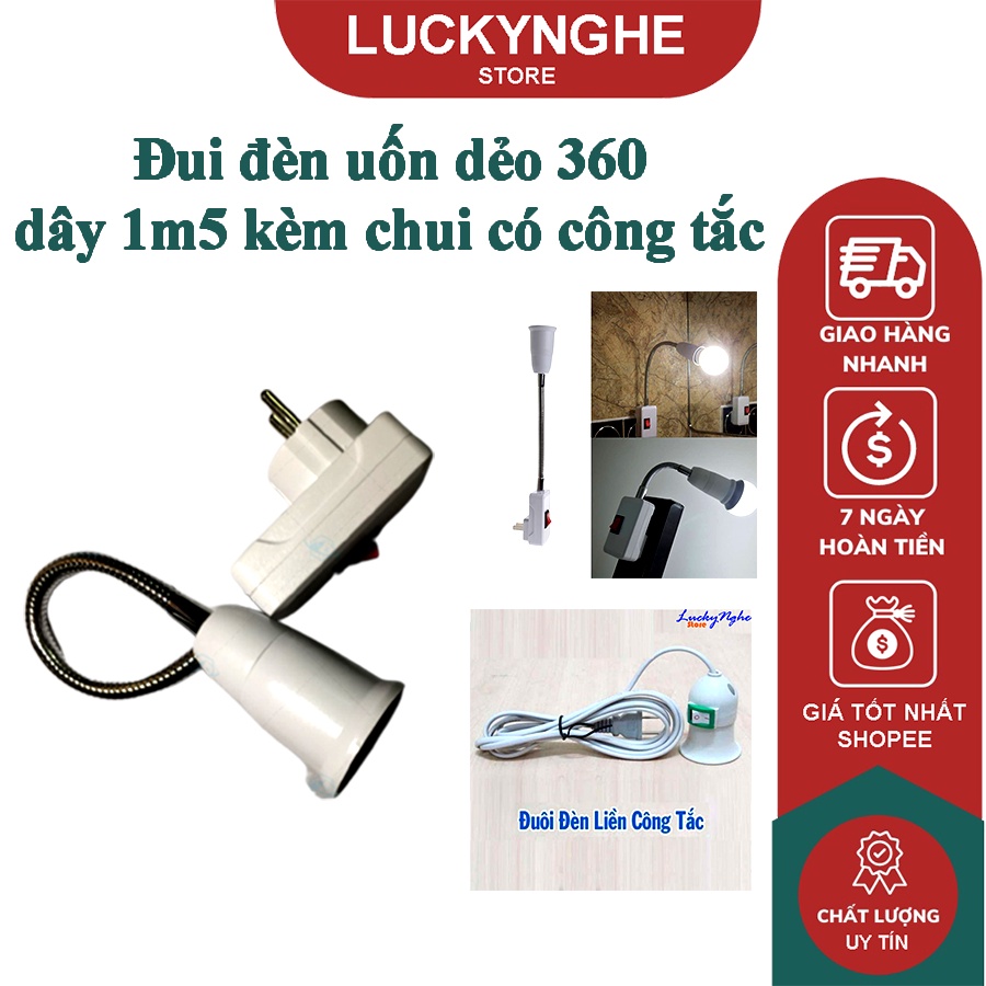 Đui đèn uốn dẻo 360 độ có công tắc 30cm chịu nhiệt tốt dùng cho bóng đèn điện cắm trực tiếp vào ổ cắm