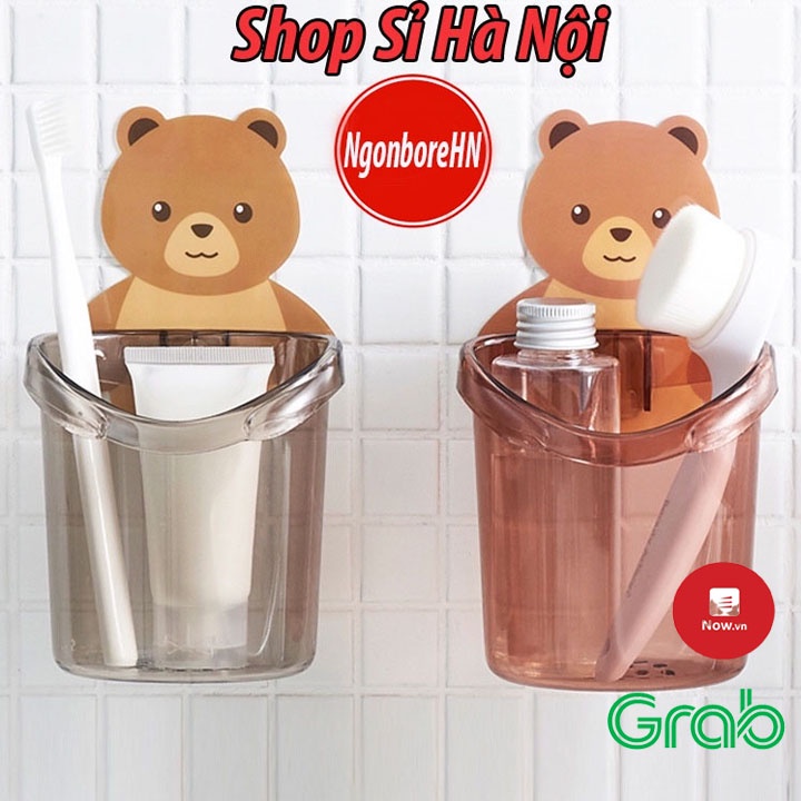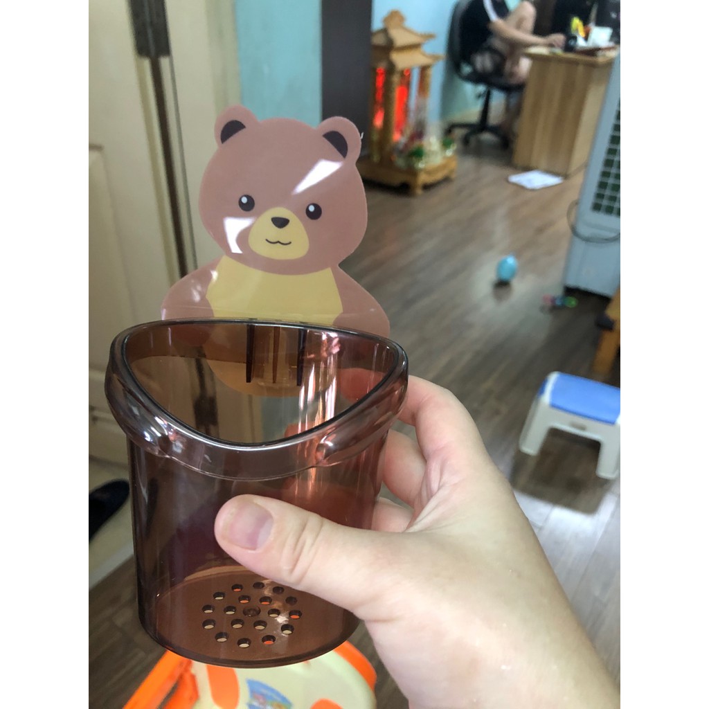đựng bàn chải đánh răng cốc gấu có lỗ thoát nước ở đáy cốc dán tường GD23