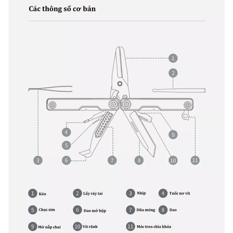Cùng các chức năng hữu dụng khác như tuốc vít, nhíp nhổ lông, ngoáy tai, đồ khui nắp chai, dũa móng,…đáp ứng đầy đủ các nhu cầu cá nhân cho mọi người dùng.
