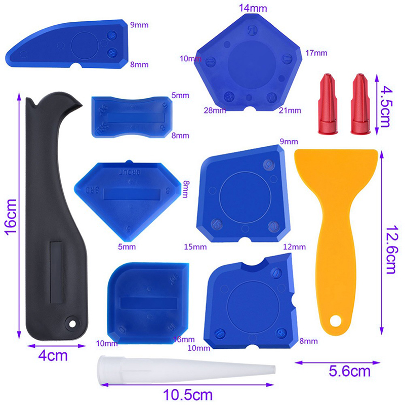 Bộ dụng cụ hỗ trợ trét keo này có nhiều hình dạng và kích thước khác nhau, phù hợp với nhiều công việc trét keo kín khác nhau, cho mọi cạnh, góc và mối nối.