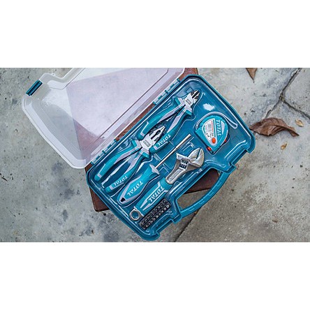 Giờ đây với bộ đồ nghề 25 chi tiết Total THKTHP90256 là bộ dụng cụ tổng hợp đầy đủ các tính năng cơ bản của các dụng cụ chuyên dụng không thể thiếu trong những công việc cơ khí, lắp đạt hay sửa chữa như: Kìm, Tua vít, Cờ lê, các đầu tua vít nhiều kích thước, thước cuộn thép,…