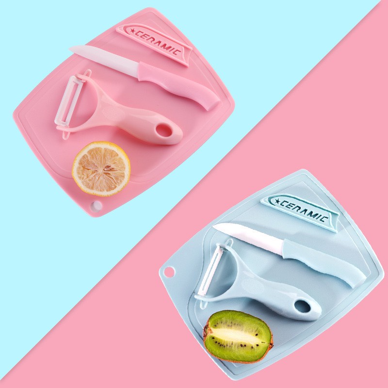 Bộ dụng cụ 3 món cắt gọt hoa quả kèm thớt tiện dụng đa năng (thớt 15.5x19.5)