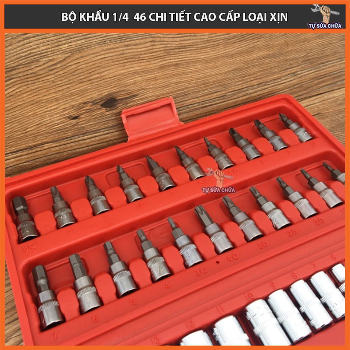 Bộ dụng cụ 46 chi tiết 1/4''chuyên mở bu lông ốc vít - Bộ dụng cụ sửa chữa đa năng 46 chi tiết - HÀNG XỊN