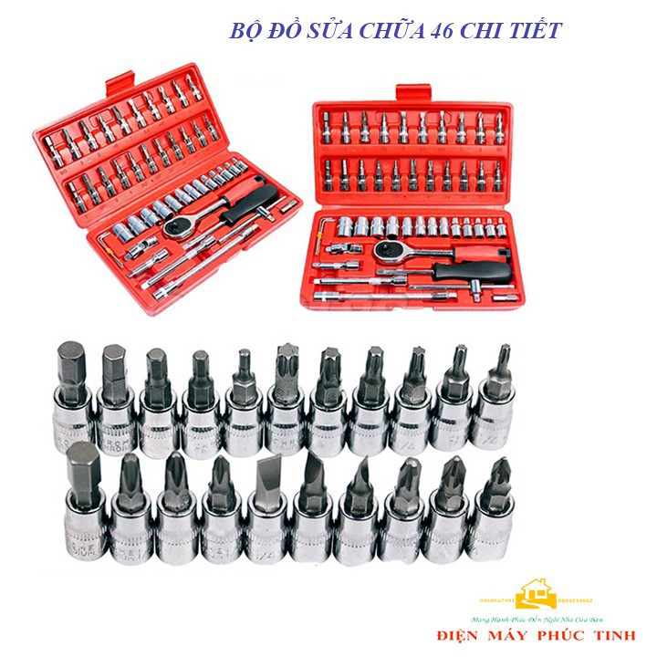 - Bộ đồ sửa chữa 46 chi tiết sẽ là dụng cụ hữu ích giúp bạn sửa chữa xe máy,xe đạp,ô tô hay trang trí nhà một cách nhanh chóng và tiện lợi nhất.
