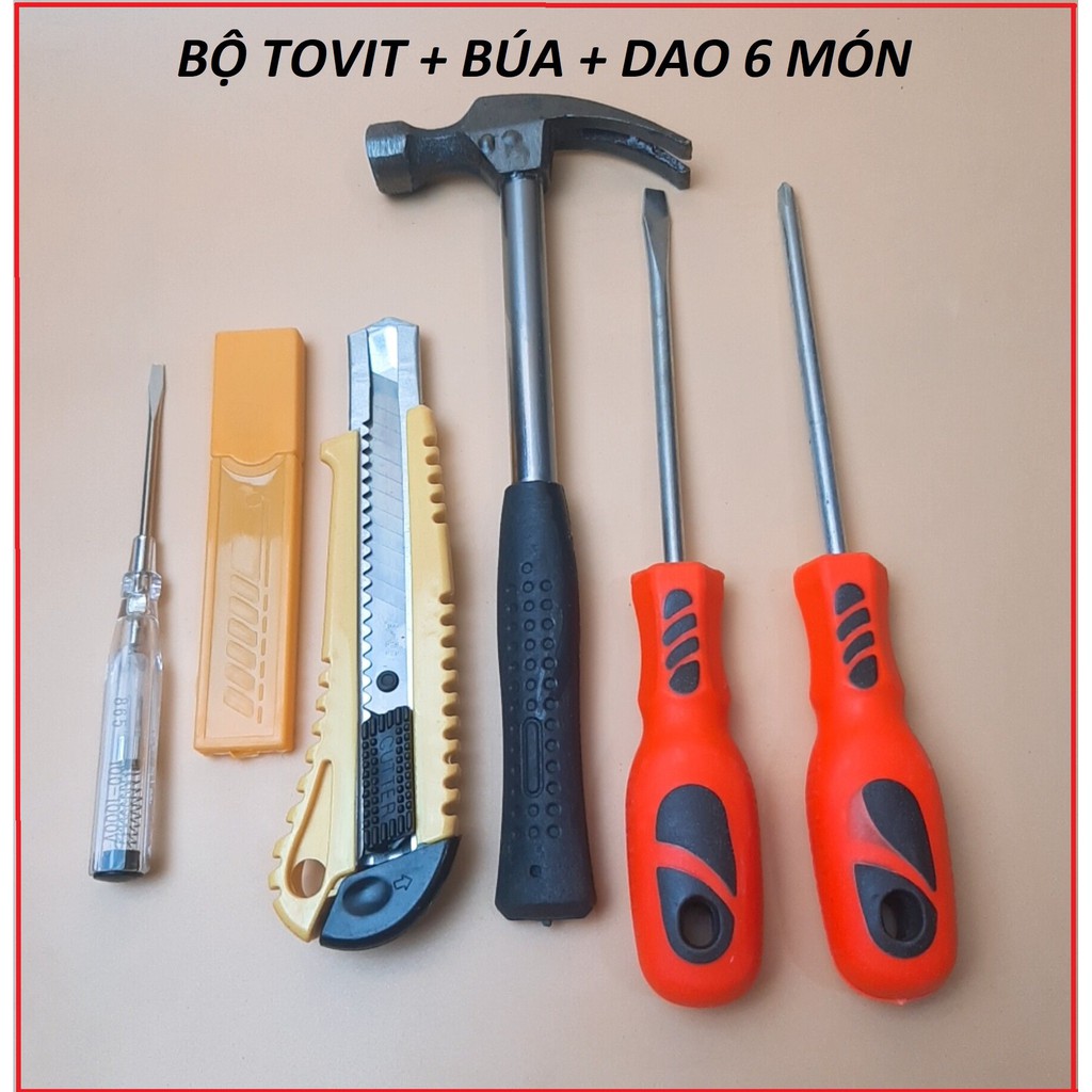 Bộ dụng cụ 6 món tua vít kèm búa dao rọc giấy cực kì tiện lợi cho gia đình - dụng cụ sửa chữa đa năng