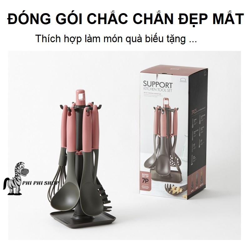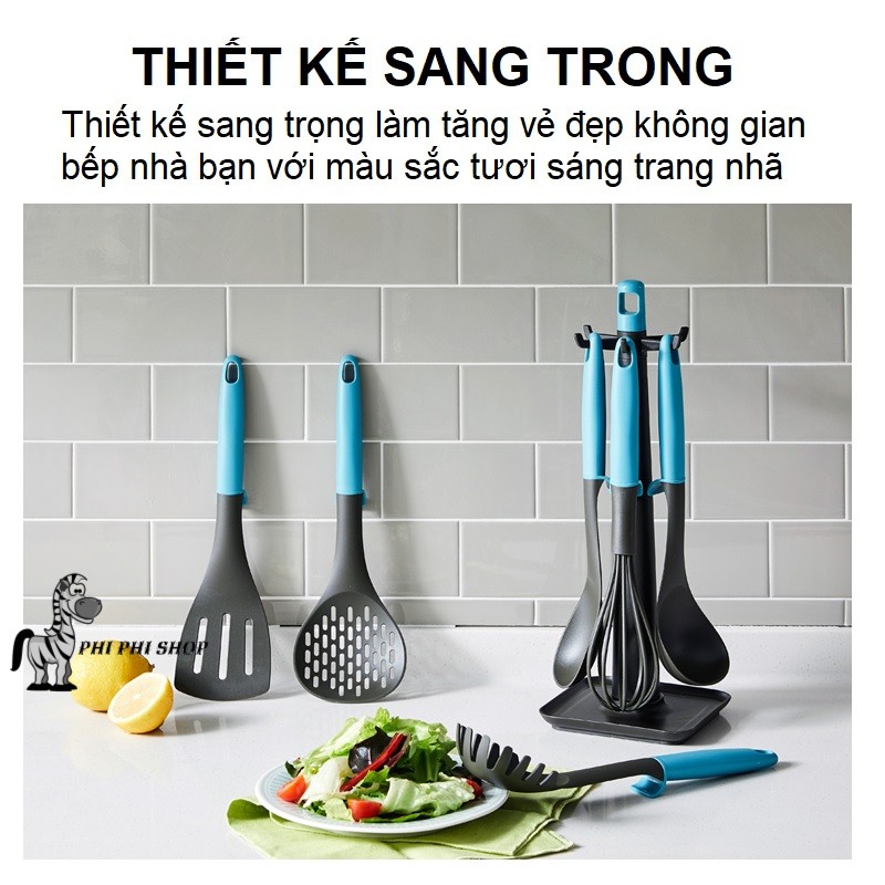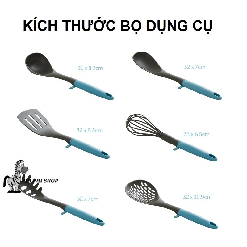 Bộ gồm 1 giá treo kích thước 40x14.5cm và 6 món dụng cụ kích thước từ 31 đến 33cm tùy món ( kích thước cụ thể trong hình bên dưới )