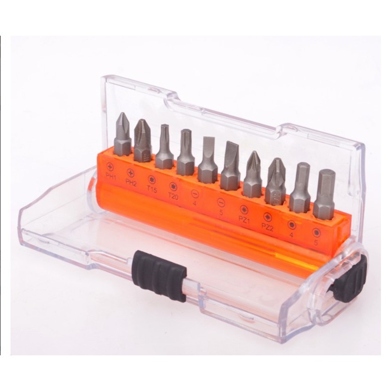 10 đầu vít: PH1, PH2, T15, T20, 4.0mm, 5.0mm, PZ1, PZ2, 4.0, 5.0mm