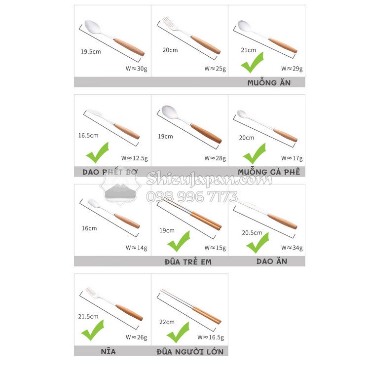 Giới thiệu Bộ Dụng Cụ Bàn Ăn Muỗng Đũa Nĩa Dao Cán Gỗ INOX 304