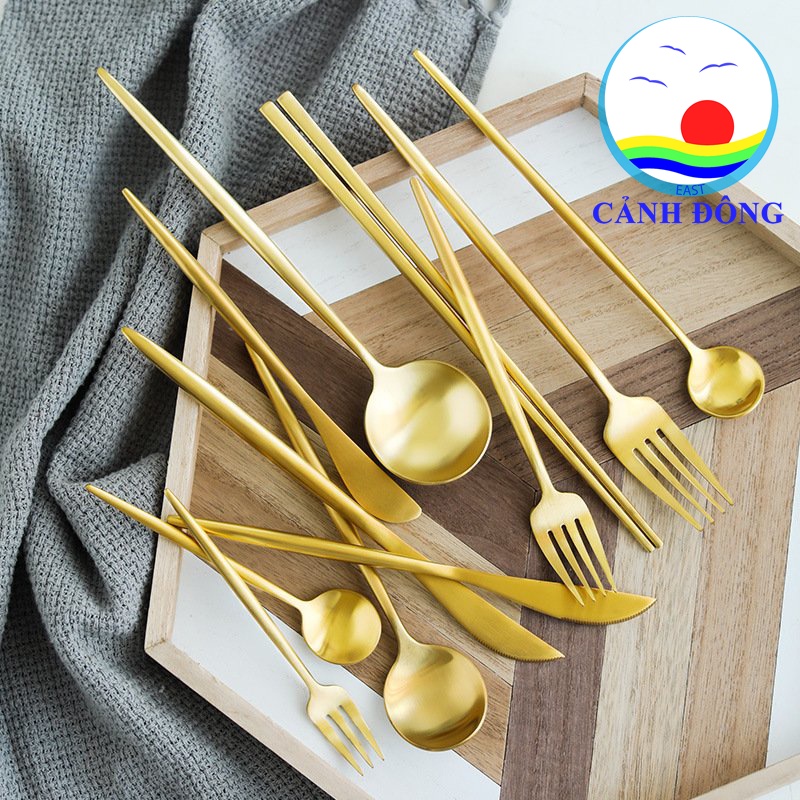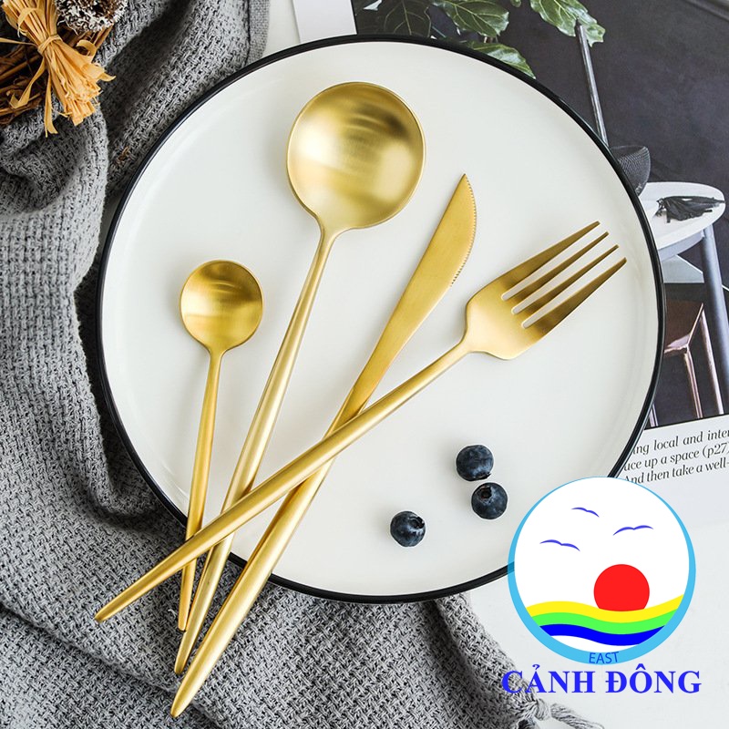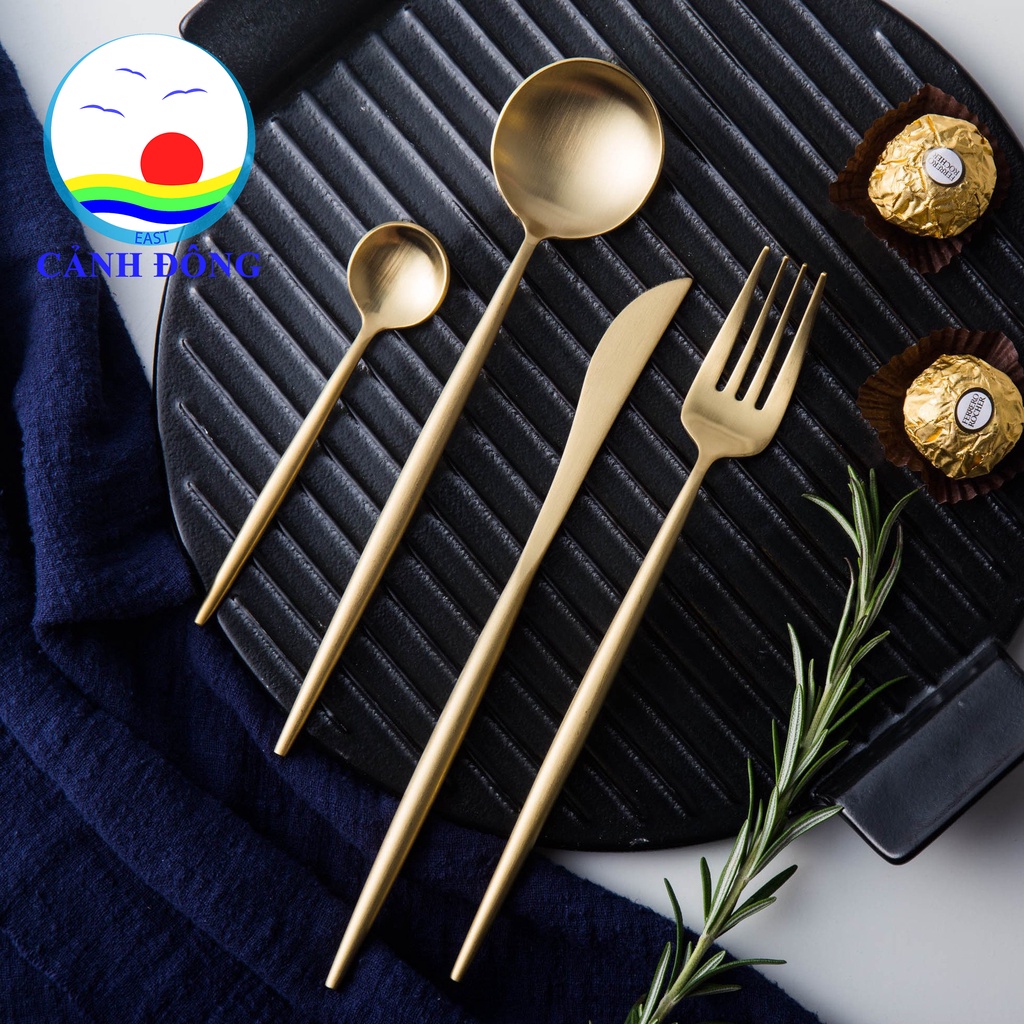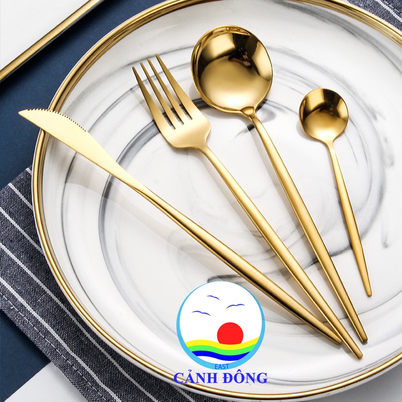 Bộ dụng cụ bàn ăn inox mạ lớp vàng 24k sang trọng thanh lịch 4 món như hình