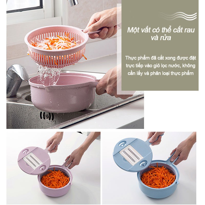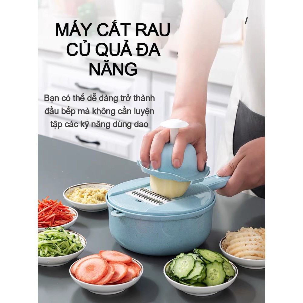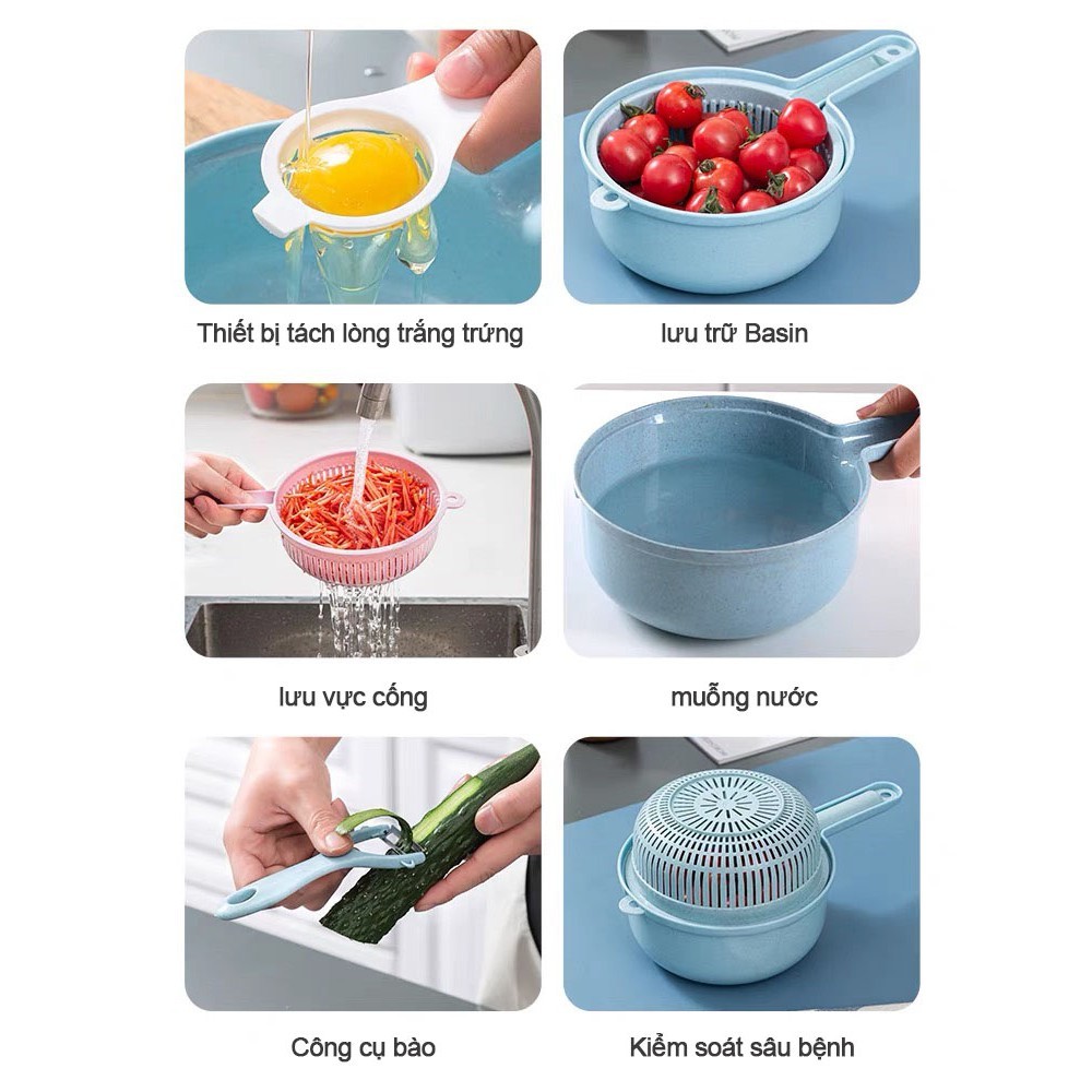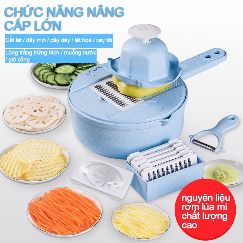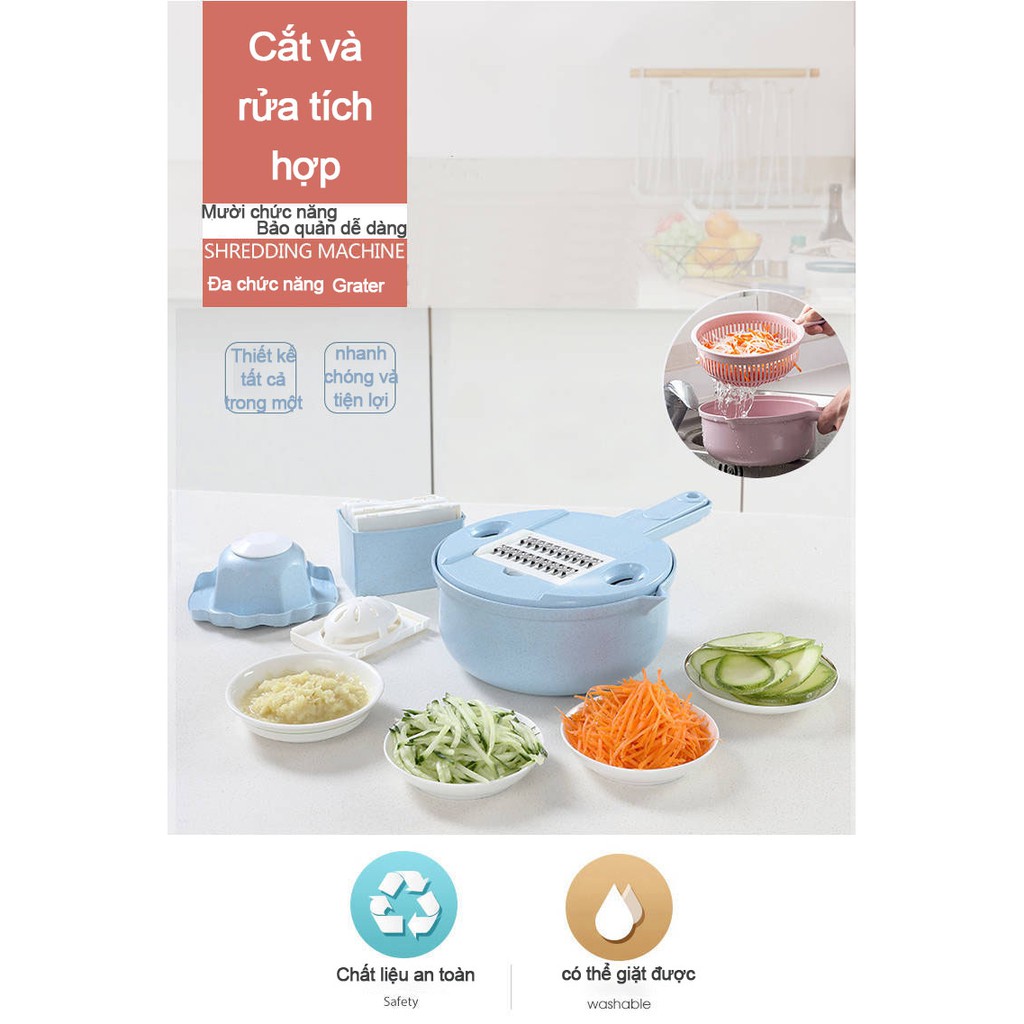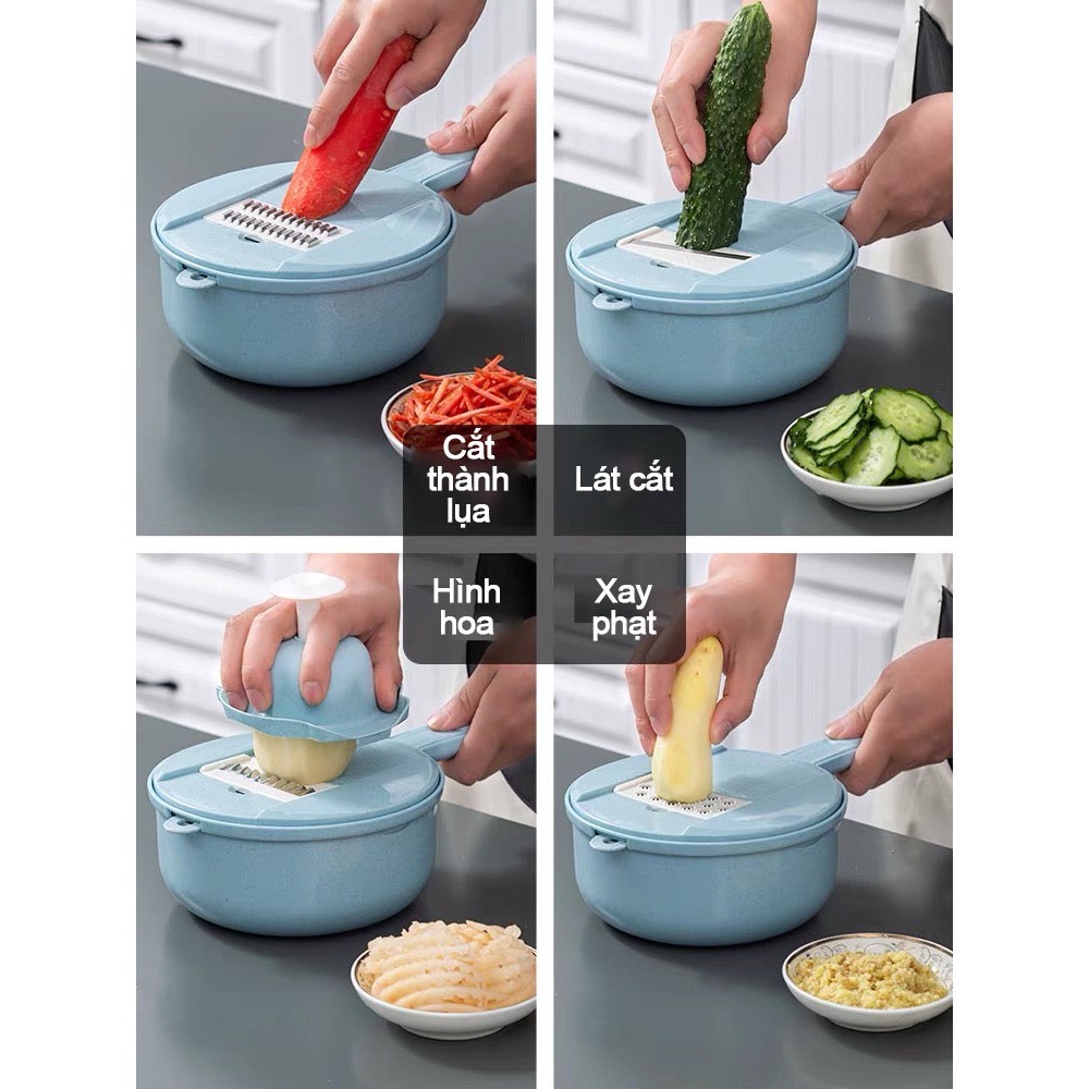 Nhà cửa & Đời sống > Dụng cụ nhà bếp > Bàn nạo, dụng cụ bào, cắt || Dụng cụ bào cắt gọt rau củ quả đa năng kèm rổ 12in1-Tiện Lợi Cho Nhà BếpCòn hàng