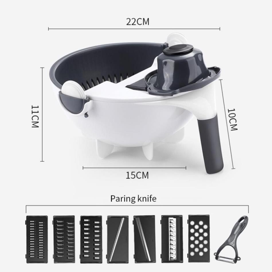 Nhà cửa & Đời sống > Dụng cụ nhà bếp > Bàn nạo, dụng cụ bào, cắt || Dụng cụ bào cắt gọt rau củ quả đa năng kèm rổ 9in1Còn hàng
