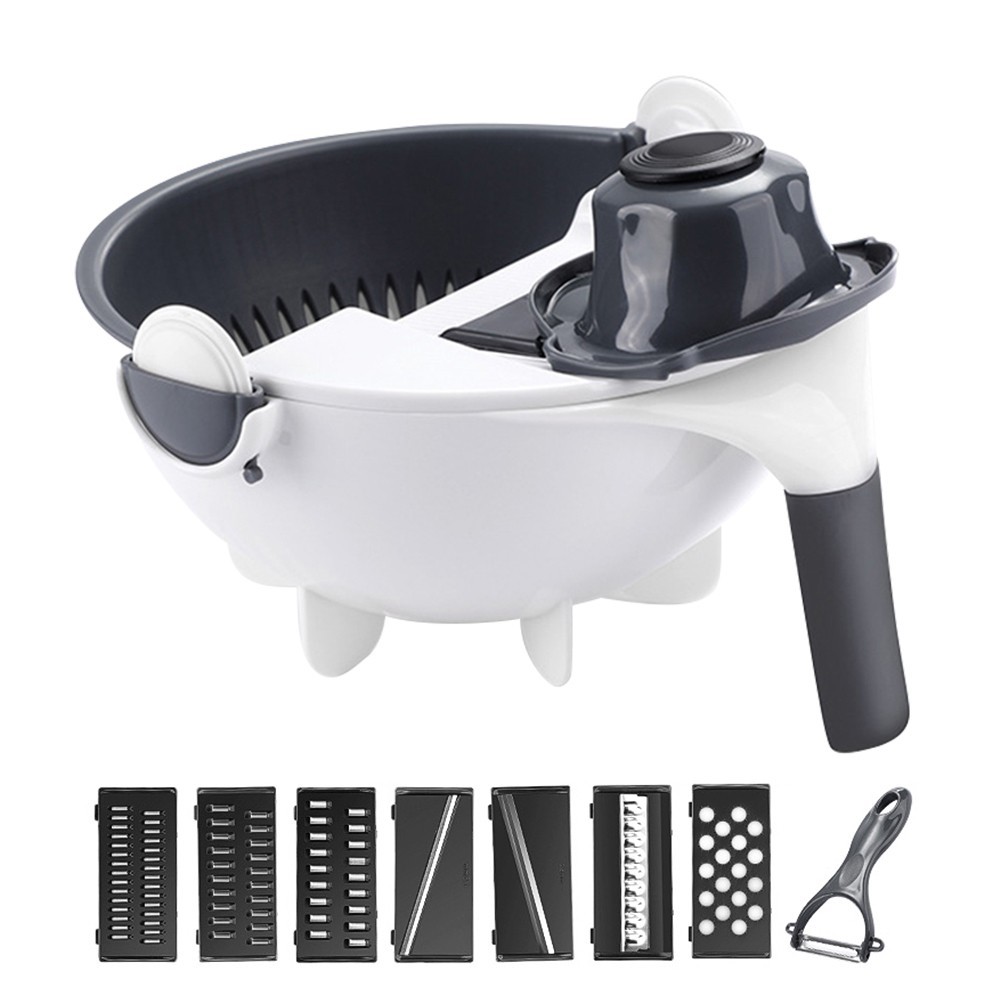 Nhà cửa & Đời sống > Dụng cụ nhà bếp > Bàn nạo, dụng cụ bào, cắt || Dụng cụ bào cắt gọt rau củ quả đa năng kèm rổ 9in1Còn hàng
