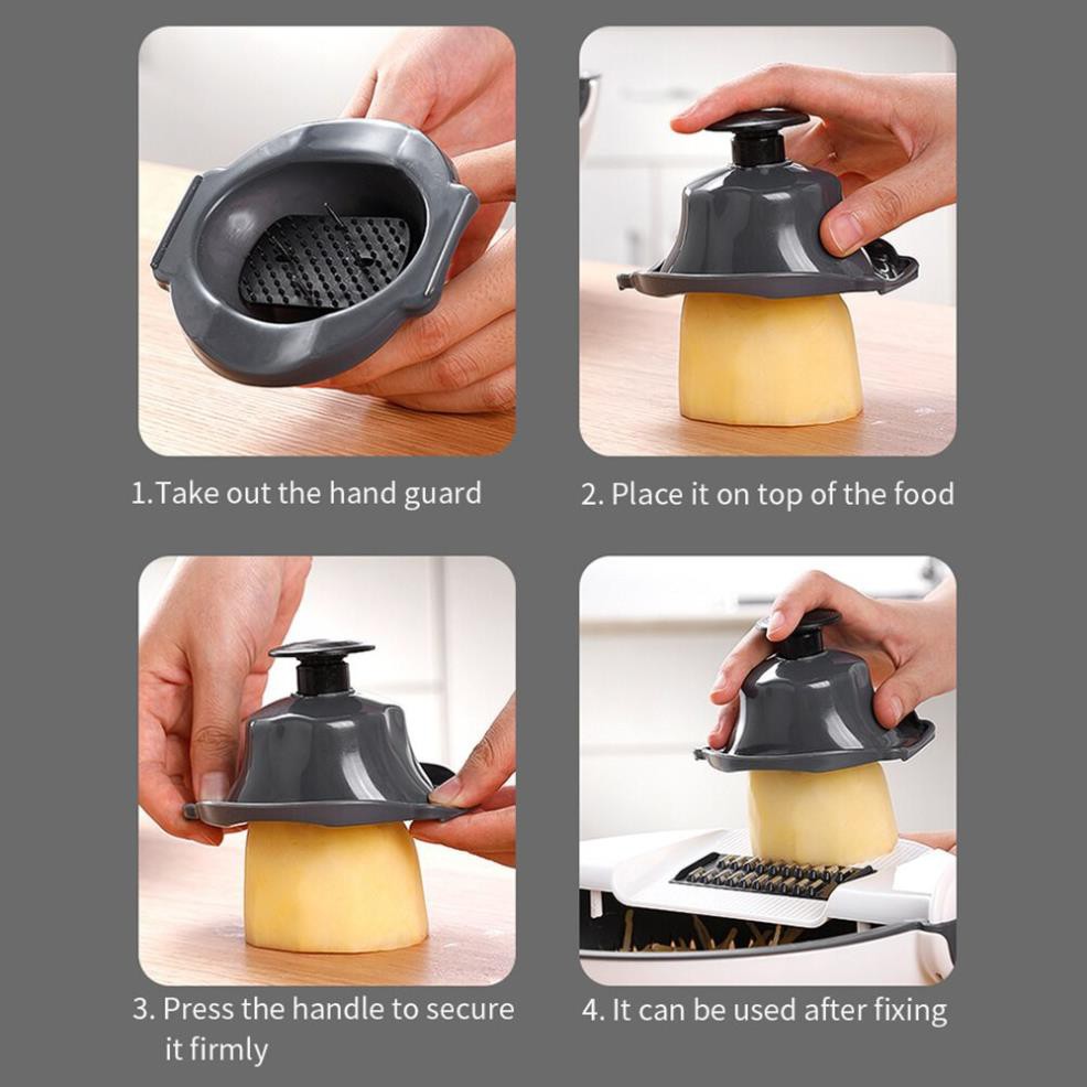 ✔️Dụng cụ có kèm đầu giữ rau củ bảo vệ tay bạn an toàn và tận dụng những phần rau củ còn sót lại.
