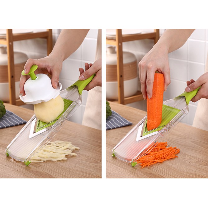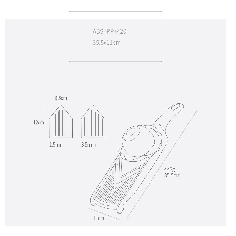 Nhà cửa & Đời sống > Dụng cụ nhà bếp > Bàn nạo, dụng cụ bào, cắt || Dụng cụ bào củ quả inox kèm 2 lưỡi - 35.5x11cm 443gCòn hàng