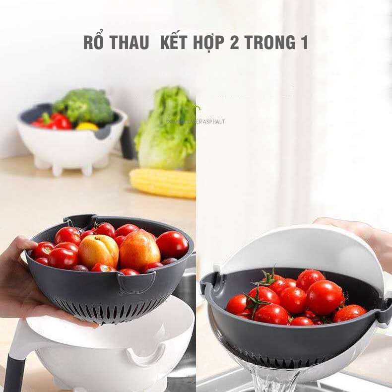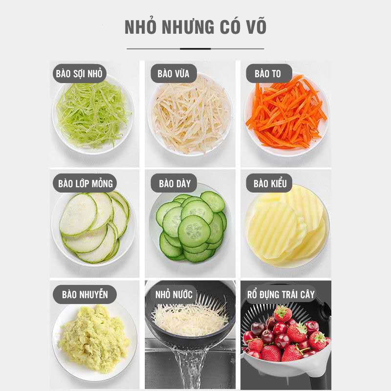 - Rổ thái rau củ đa năng với thiết kế xoay lồng độc đáo giúp việc cắt thái và rửa rau củ, hoa quả trở nên dễ dàng hơn.