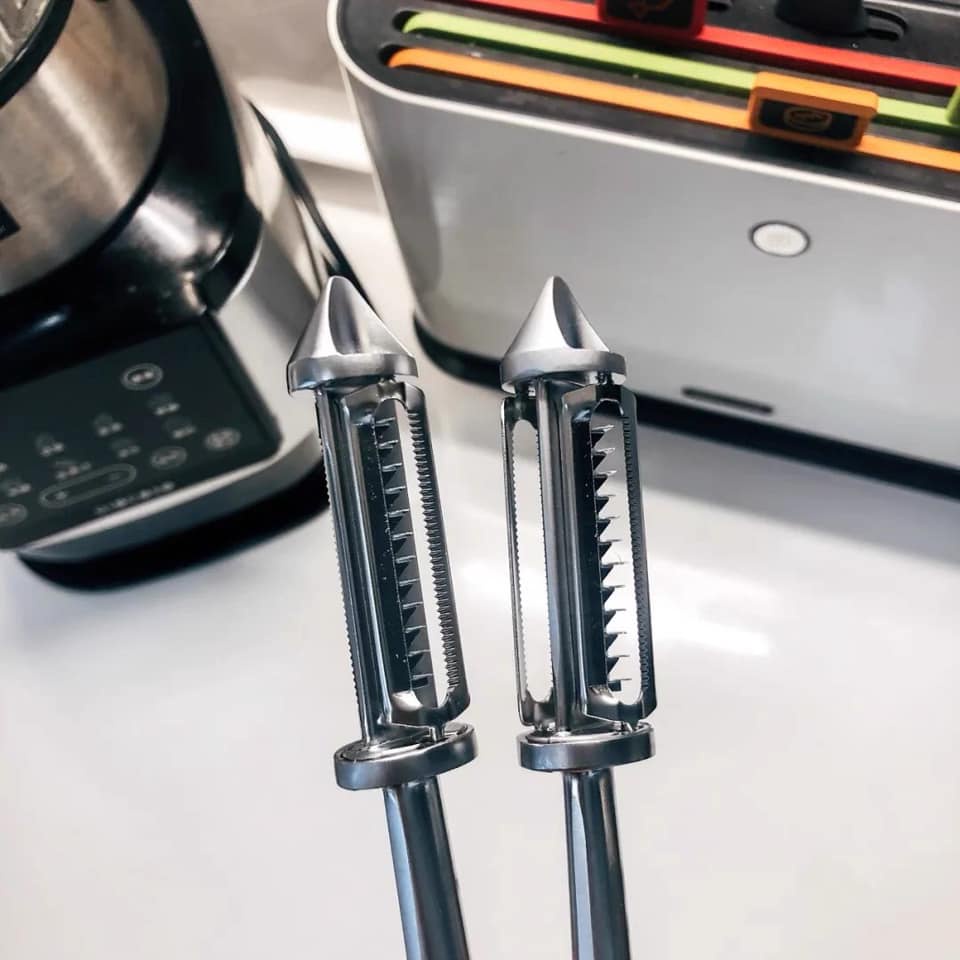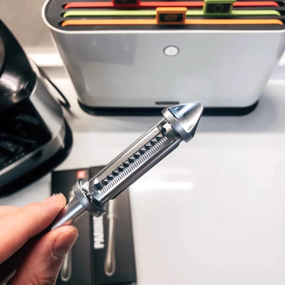 - Lưỡi dao dao Thép không rỉ, dạng răng cưa rất sắc bén giúp bạn dễ dàng thao tác gọt vỏ rau củ quả hoặc bào sợi rau củ quả chế biến các món ăn yêu thích Thật tuyệt vời đúng không nào,