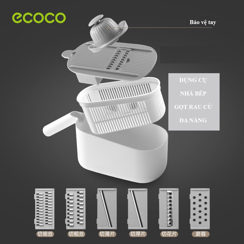Dụng cụ bào & gọt rau củ 6 lưỡi nhà bếp đa năng, máy bào sợi khoai tây, sản phẩm đa năng gia dụng Ecoco E1909