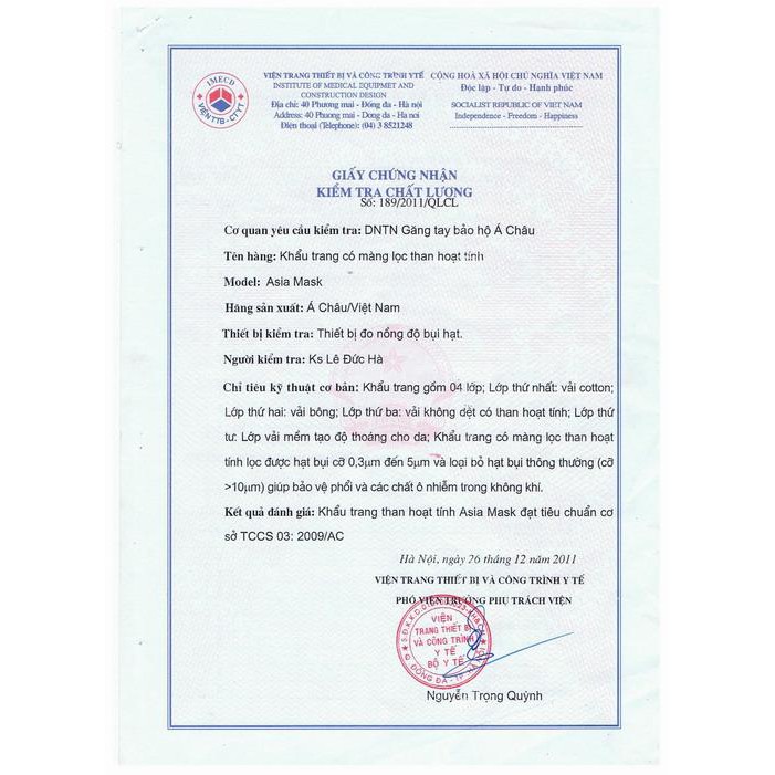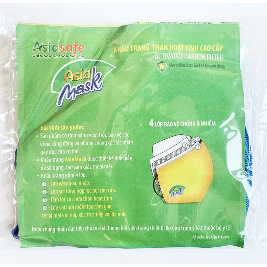 - Khẩu trang AsiaMask bảo vệ sức khỏe, chống không khí ô nhiễm, ứng dụng công nghệ nước ngoài với nguyên liệu hoàn toàn ngoại nhập. - Khẩu trang gồm 4 lớp: 1, Lớp vải chính – 2, một lớp lọc bụi cao cấp – 3, một lớp than hoạt tính – 4, lớp vải thấm mồ hôi tạo sự thoải mái khi sử dụng sản phẩm.
