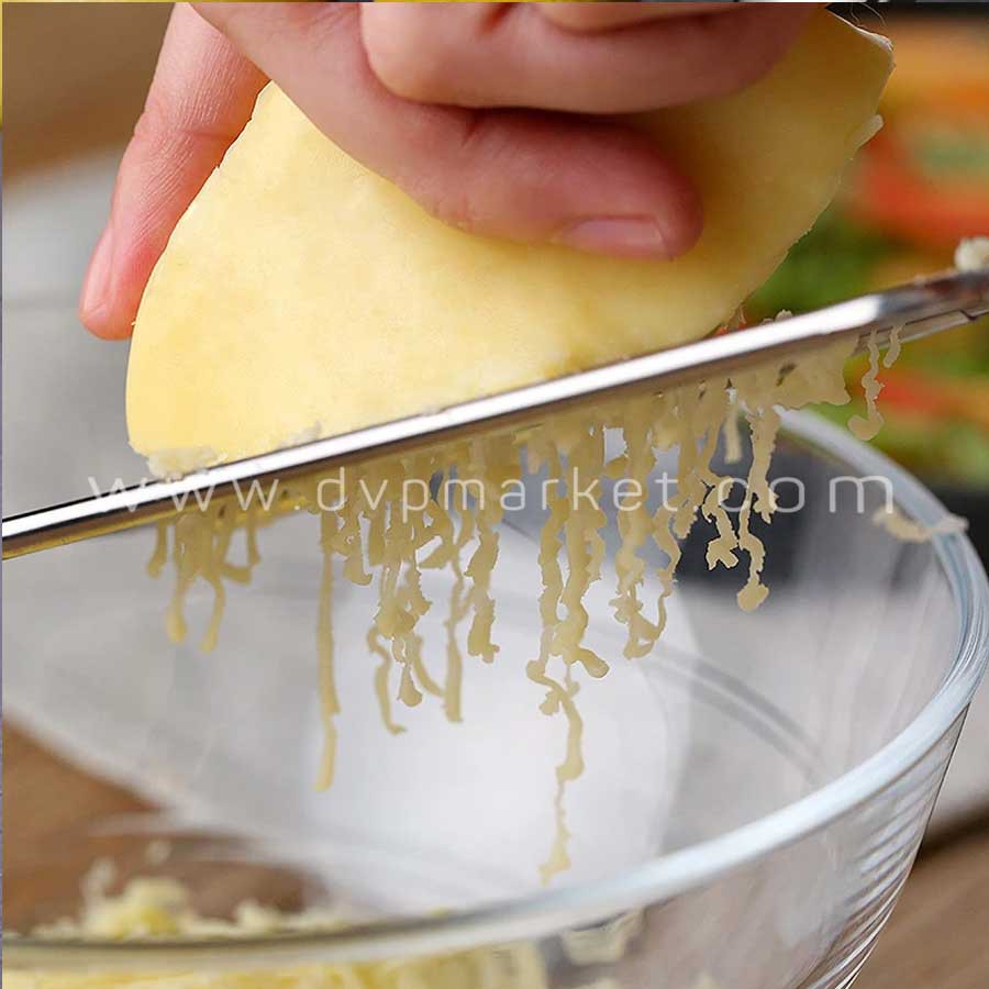 - Chất liệu : Inox dày dặn, sáng bóng có độ bền cao- Tay cầm dài chắc chắn, mặt bào thiết kế các lỗ với lưỡi dao sắc giúp bảo phô mai nhanh chóng, đồng đều