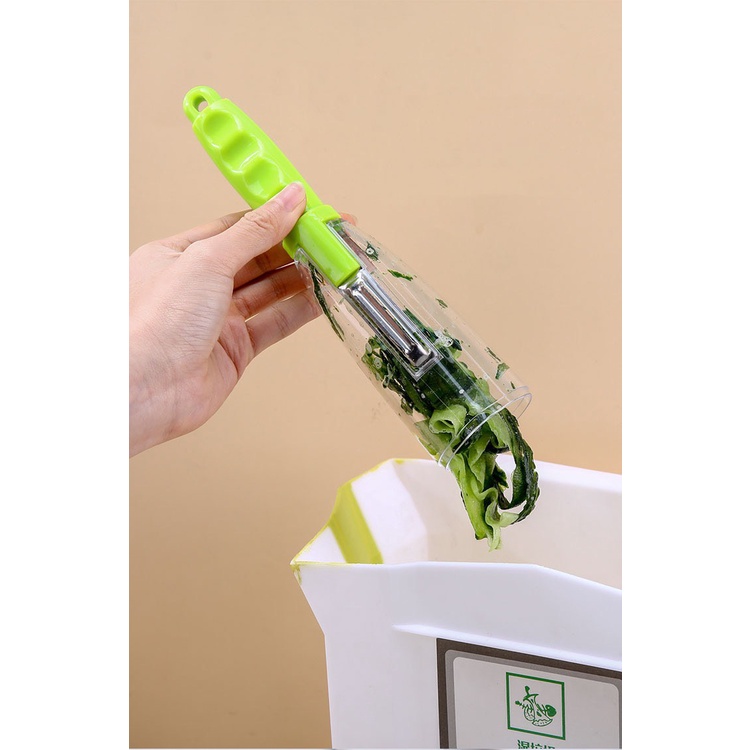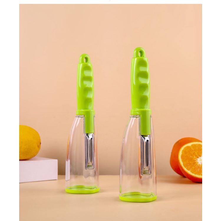 Máy gọt vỏ bằng thép không gỉ có hộp đựng Dao gọt rau củ quả có tay cầm Ống cuộn da Lưu trữ Dụng cụ bóc vỏ nhà bếp Tiện íchKích thước: 26 * 6,5cm