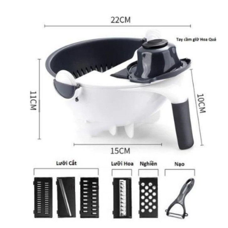Dụng cụ bào rau củ quả kèm rổ 9 trong 1 đa năng tiện dụng (RỔ BÀO 9 MÓN)