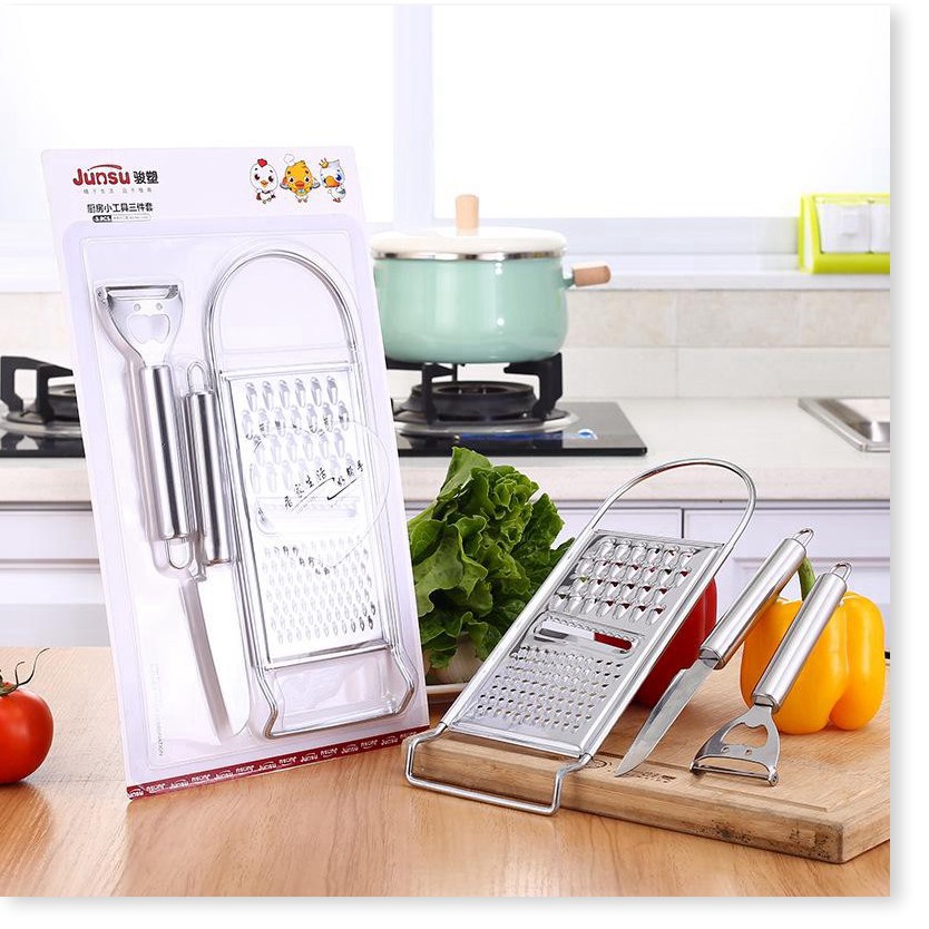 Nhà cửa & Đời sống > Dụng cụ nhà bếp > Bàn nạo, dụng cụ bào, cắt || Dụng cụ bào sợi GIÁ VỐN] Bộ 3 dao gọt củ quả inox, gọt vỏ, bào sợi, bào sợi nhuyễn, cắt miếng 8763Còn hàng