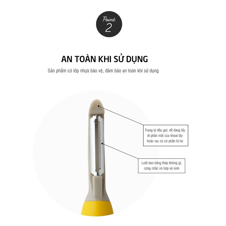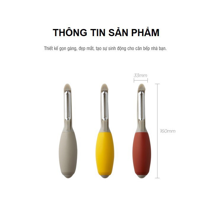 Sản phẩm có lưỡi dao làm bằng thép không gỉ, sắc bén, tuyệt đối an toàn khi sử dụng, có tay cầm bằng silicone giúp bạn dễ thao tác.