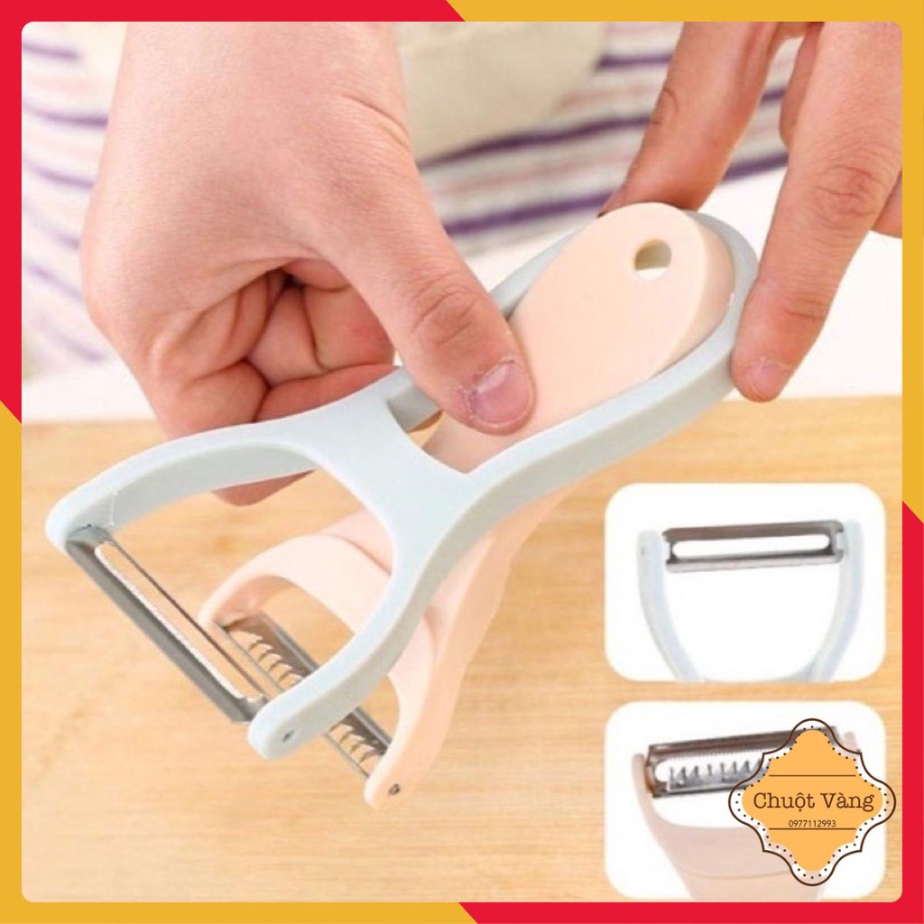 Tiện lợi cực kì luôn các chế ạ. nạo này vừa nạo được vỏ lại vừa nạo sợi được nha. 2 chiếc nạo trong cùng 1 sản phẩm.Cán nhựa thiết kế dễ cầm
