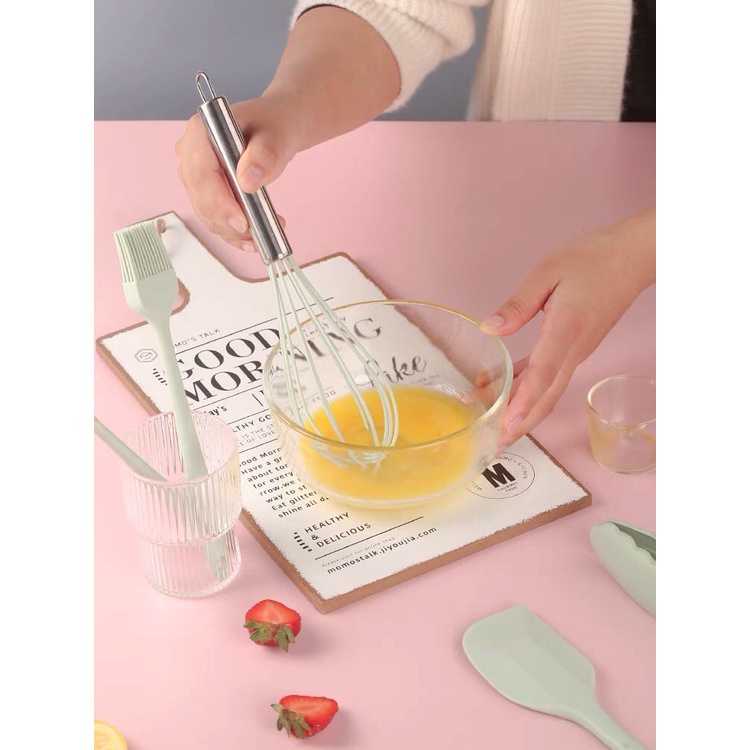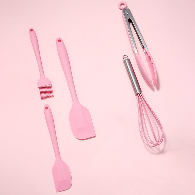 Bộ dụng cụ bếp silicon, nấu ăn làm bánh 5 món chịu nhiệt cao màu hồng pastel xanh mint Ngọt ShopBộ dụng cụ bếp silicone gồm 5 món: