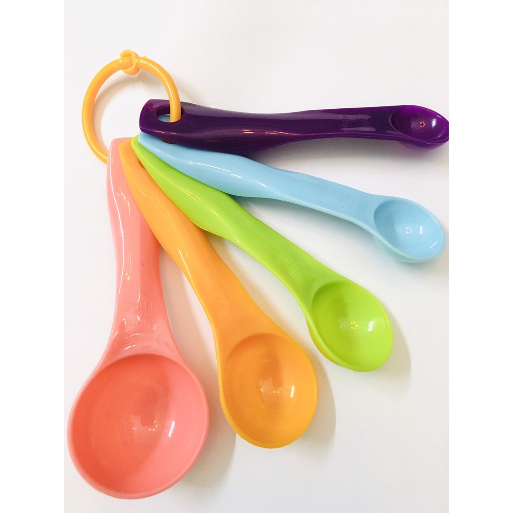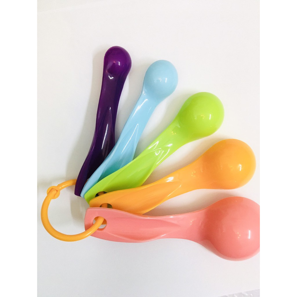 - Bộ 5 muỗng Đo Lường (gồm 5 cái)- Bộ 05 muỗng đo lường bằng nhựa giúp cho những bạn bắt đầu tập tành làm bánh hoặc là đã từng làm bánh có thể đo lường chính xác nguyên liệu với dung tích nhỏ, cần đong ít.... để tránh những trường hợp bánh bị hư hỏng do không đo lường được chính xác nguyên liệu làm bánh như là đong men và vanilla...