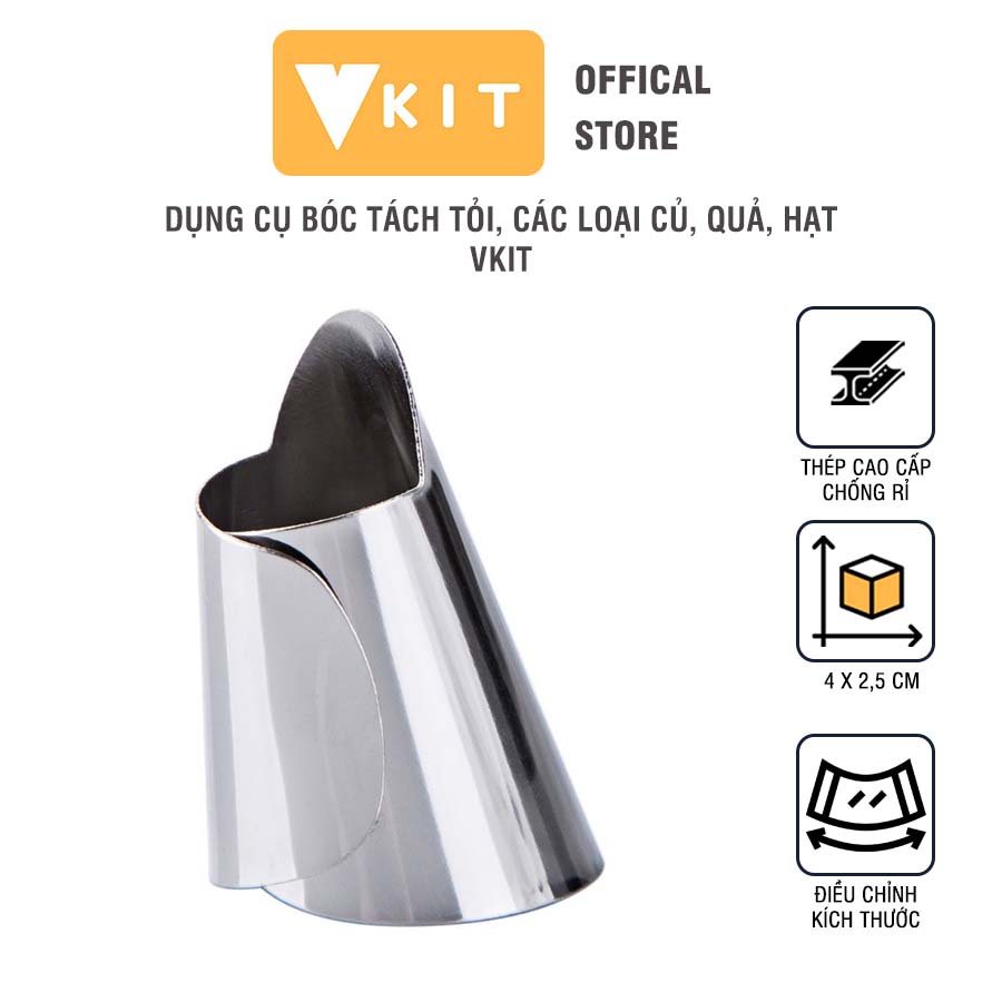Tên sản phẩm: Dụng cụ bóc, tách vỏ tỏi- Dụng cụ hỗ trợ bóc tách các loại củ, quả, hạt bằng thép không gỉ VKITChất liệu : Thép chống han gỉ
