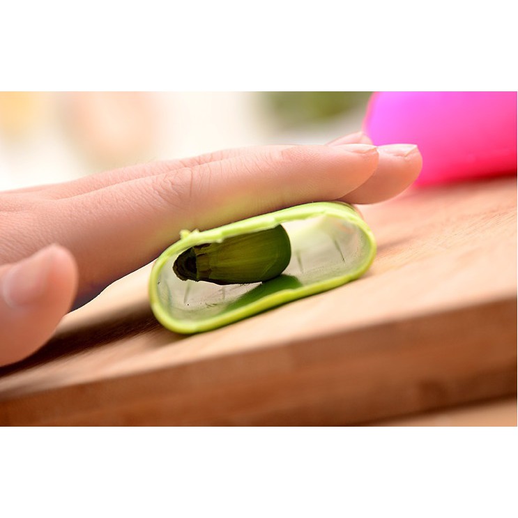 - Dụng Cụ Bóc Vỏ Tỏi Không Hôi Tay giúp bạn lột sạch vỏ dễ dàng.